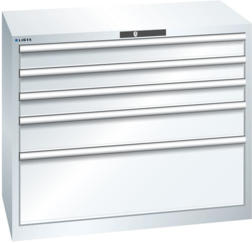 "longDescription": "LISTA Schubladenschrank, Lista Einheit: 54x27E, BxTxH: 1023x572x850mm, Schubladen-Nutzfläche BxT: 918x459mm, Anzahl Schubladen: 5, Anzahl Fronthöhen (Tragkraft): 3x100mm (75kg), 1x150mm (75kg), 1x300mm (200kg), Schliessart: Key Lock, Standard-Schliessung mit Wechselyzlinder inkl. 2 Schlüsseln mit Schlüsselnummer, Farbe Gehäuse: Reinweiss RAL 9010, Farbe Schubladen: Reinweiss RAL 9010. Höchste Stabilität: Gehäuse bis 4t belastbar, Schubladen mit 75 oder 200 kg Tragkraft. Maximale Ausnutzung dank Vollauszug und optimaler Mantelhöhe der Schubladen. Exzellente Schutzeigenschaften gegen Schmutz, Flüssigkeiten und mechanische Beanspruchung durch geschlossenes Gehäuse mit schlag- und abriebfester Oberfläche. Überzeugende Sicherheit: Aushebesicherung gegen Herausfallen der Schubladen und Einzelschubladensperre als Kippschutz. Korrosionsschutz durch Elektrophorese-Tauchlackierung und umweltfreundlichen Pulverlack. Optimale Ordnung und Organisation dank speziellem LISTA-Einteilungsmaterial für jeden Zweck und gelochter, geschlitzter Schubladen. Professionelle Beschriftung mit Beschriftungssoftware LISTA Script und hochklappbarer Griffleiste zum Einlegen der Etiketten. Perfekte Laufruhe durch traversenlos geführten Differenzialauszug. Flexible Anpassungsmöglichkeiten durch vorperforierte Löcher für Tischplatten (Punchout), Rollen, Schubladen, Schliesssysteme für einfaches Um- und Nachrüsten<br>",