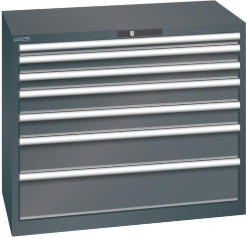 "longDescription": "LISTA Schubladenschrank, Lista Einheit: 54x27E, BxTxH: 1023x572x850mm, Schubladen-Nutzfläche BxT: 918x459mm, Anzahl Schubladen: 7, Anzahl Fronthöhen (Tragkraft): 1x50mm (75kg), 2x75mm (75kg), 2x100mm (75kg), 1x150mm (75kg), 1x200mm (75kg), Schliessart: Key Lock, Standard-Schliessung mit Wechselyzlinder inkl. 2 Schlüsseln mit Schlüsselnummer, Farbe Gehäuse: Schwarz NCS S 9000-N, Farbe Schubladen: Schwarz NCS S 9000-N. Höchste Stabilität: Gehäuse bis 4t belastbar, Schubladen mit 75 oder 200 kg Tragkraft. Maximale Ausnutzung dank Vollauszug und optimaler Mantelhöhe der Schubladen. Exzellente Schutzeigenschaften gegen Schmutz, Flüssigkeiten und mechanische Beanspruchung durch geschlossenes Gehäuse mit schlag- und abriebfester Oberfläche. Überzeugende Sicherheit: Aushebesicherung gegen Herausfallen der Schubladen und Einzelschubladensperre als Kippschutz. Korrosionsschutz durch Elektrophorese-Tauchlackierung und umweltfreundlichen Pulverlack. Optimale Ordnung und Organisation dank speziellem LISTA-Einteilungsmaterial für jeden Zweck und gelochter, geschlitzter Schubladen. Professionelle Beschriftung mit Beschriftungssoftware LISTA Script und hochklappbarer Griffleiste zum Einlegen der Etiketten. Perfekte Laufruhe durch traversenlos geführten Differenzialauszug. Flexible Anpassungsmöglichkeiten durch vorperforierte Löcher für Tischplatten (Punchout), Rollen, Schubladen, Schliesssysteme für einfaches Um- und Nachrüsten<br>",