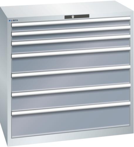 "longDescription": "LISTA Schubladenschrank, Lista Einheit: 54x27E, BxTxH: 1023x572x1000mm, Schubladen-Nutzfläche BxT: 918x459mm, Anzahl Schubladen: 7, Anzahl Fronthöhen (Tragkraft): 2x75mm (75kg), 1x100mm (75kg), 3x150mm (75kg), 1x200mm (75kg), Schliessart: Key Lock, Standard-Schliessung mit Wechselyzlinder inkl. 2 Schlüsseln mit Schlüsselnummer, Farbe Gehäuse: Lichtgrau RAL 7035, Farbe Schubladen: Grau metallic NCS S 6502-B. Höchste Stabilität: Gehäuse bis 4t belastbar, Schubladen mit 75 oder 200 kg Tragkraft. Maximale Ausnutzung dank Vollauszug und optimaler Mantelhöhe der Schubladen. Exzellente Schutzeigenschaften gegen Schmutz, Flüssigkeiten und mechanische Beanspruchung durch geschlossenes Gehäuse mit schlag- und abriebfester Oberfläche. Überzeugende Sicherheit: Aushebesicherung gegen Herausfallen der Schubladen und Einzelschubladensperre als Kippschutz. Korrosionsschutz durch Elektrophorese-Tauchlackierung und umweltfreundlichen Pulverlack. Optimale Ordnung und Organisation dank speziellem LISTA-Einteilungsmaterial für jeden Zweck und gelochter, geschlitzter Schubladen. Professionelle Beschriftung mit Beschriftungssoftware LISTA Script und hochklappbarer Griffleiste zum Einlegen der Etiketten. Perfekte Laufruhe durch traversenlos geführten Differenzialauszug. Flexible Anpassungsmöglichkeiten durch vorperforierte Löcher für Tischplatten (Punchout), Rollen, Schubladen, Schliesssysteme für einfaches Um- und Nachrüsten<br>",