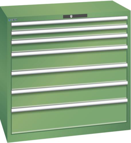 "longDescription": "LISTA Schubladenschrank, Lista Einheit: 54x27E, BxTxH: 1023x572x1000mm, Schubladen-Nutzfläche BxT: 918x459mm, Anzahl Schubladen: 7, Anzahl Fronthöhen (Tragkraft): 2x75mm (200kg), 1x100mm (200kg), 3x150mm (200kg), 1x200mm (200kg), Schliessart: Code Lock, elektronisches Zahlenschloss mit 10 Ziffern für 4- bis 6-stellige Codes, bis 100 Codes, Farbe Gehäuse: Resedagrün RAL 6011, Farbe Schubladen: Resedagrün RAL 6011. Höchste Stabilität: Gehäuse bis 4t belastbar, Schubladen mit 75 oder 200 kg Tragkraft. Maximale Ausnutzung dank Vollauszug und optimaler Mantelhöhe der Schubladen. Exzellente Schutzeigenschaften gegen Schmutz, Flüssigkeiten und mechanische Beanspruchung durch geschlossenes Gehäuse mit schlag- und abriebfester Oberfläche. Überzeugende Sicherheit: Aushebesicherung gegen Herausfallen der Schubladen und Einzelschubladensperre als Kippschutz. Korrosionsschutz durch Elektrophorese-Tauchlackierung und umweltfreundlichen Pulverlack. Optimale Ordnung und Organisation dank speziellem LISTA-Einteilungsmaterial für jeden Zweck und gelochter, geschlitzter Schubladen. Professionelle Beschriftung mit Beschriftungssoftware LISTA Script und hochklappbarer Griffleiste zum Einlegen der Etiketten. Perfekte Laufruhe durch traversenlos geführten Differenzialauszug. Flexible Anpassungsmöglichkeiten durch vorperforierte Löcher für Tischplatten (Punchout), Rollen, Schubladen, Schliesssysteme für einfaches Um- und Nachrüsten<br>",
