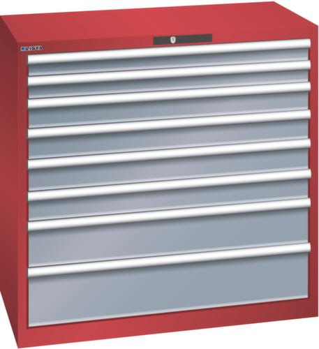 "longDescription": "LISTA Schubladenschrank, Lista Einheit: 54x27E, BxTxH: 1023x572x1000mm, Schubladen-Nutzfläche BxT: 918x459mm, Anzahl Schubladen: 8, Anzahl Fronthöhen (Tragkraft): 2x75mm (75kg), 4x100mm (75kg), 1x150mm (75kg), 1x200mm (75kg), Schliessart: Code Lock, elektronisches Zahlenschloss mit 10 Ziffern für 4- bis 6-stellige Codes, bis 100 Codes, Farbe Gehäuse: Rubinrot RAL 3003, Farbe Schubladen: Grau metallic NCS S 6502-B. Höchste Stabilität: Gehäuse bis 4t belastbar, Schubladen mit 75 oder 200 kg Tragkraft. Maximale Ausnutzung dank Vollauszug und optimaler Mantelhöhe der Schubladen. Exzellente Schutzeigenschaften gegen Schmutz, Flüssigkeiten und mechanische Beanspruchung durch geschlossenes Gehäuse mit schlag- und abriebfester Oberfläche. Überzeugende Sicherheit: Aushebesicherung gegen Herausfallen der Schubladen und Einzelschubladensperre als Kippschutz. Korrosionsschutz durch Elektrophorese-Tauchlackierung und umweltfreundlichen Pulverlack. Optimale Ordnung und Organisation dank speziellem LISTA-Einteilungsmaterial für jeden Zweck und gelochter, geschlitzter Schubladen. Professionelle Beschriftung mit Beschriftungssoftware LISTA Script und hochklappbarer Griffleiste zum Einlegen der Etiketten. Perfekte Laufruhe durch traversenlos geführten Differenzialauszug. Flexible Anpassungsmöglichkeiten durch vorperforierte Löcher für Tischplatten (Punchout), Rollen, Schubladen, Schliesssysteme für einfaches Um- und Nachrüsten<br>",