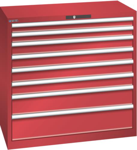 "longDescription": "LISTA Schubladenschrank, Lista Einheit: 54x27E, BxTxH: 1023x572x1000mm, Schubladen-Nutzfläche BxT: 918x459mm, Anzahl Schubladen: 8, Anzahl Fronthöhen (Tragkraft): 2x75mm (200kg), 4x100mm (200kg), 1x150mm (200kg), 1x200mm (200kg), Schliessart: Key Lock, Standard-Schliessung mit Wechselyzlinder inkl. 2 Schlüsseln mit Schlüsselnummer, Farbe Gehäuse: Rubinrot RAL 3003, Farbe Schubladen: Rubinrot RAL 3003. Höchste Stabilität: Gehäuse bis 4t belastbar, Schubladen mit 75 oder 200 kg Tragkraft. Maximale Ausnutzung dank Vollauszug und optimaler Mantelhöhe der Schubladen. Exzellente Schutzeigenschaften gegen Schmutz, Flüssigkeiten und mechanische Beanspruchung durch geschlossenes Gehäuse mit schlag- und abriebfester Oberfläche. Überzeugende Sicherheit: Aushebesicherung gegen Herausfallen der Schubladen und Einzelschubladensperre als Kippschutz. Korrosionsschutz durch Elektrophorese-Tauchlackierung und umweltfreundlichen Pulverlack. Optimale Ordnung und Organisation dank speziellem LISTA-Einteilungsmaterial für jeden Zweck und gelochter, geschlitzter Schubladen. Professionelle Beschriftung mit Beschriftungssoftware LISTA Script und hochklappbarer Griffleiste zum Einlegen der Etiketten. Perfekte Laufruhe durch traversenlos geführten Differenzialauszug. Flexible Anpassungsmöglichkeiten durch vorperforierte Löcher für Tischplatten (Punchout), Rollen, Schubladen, Schliesssysteme für einfaches Um- und Nachrüsten<br>",