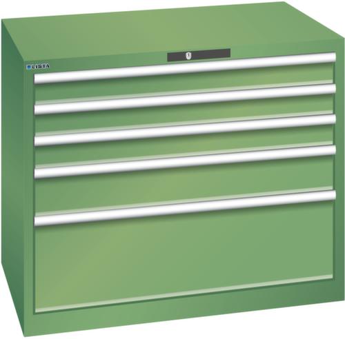 "longDescription": "LISTA Schubladenschrank, Lista Einheit: 54x36E, BxTxH: 1023x725x850mm, Schubladen-Nutzfläche BxT: 918x612mm, Anzahl Schubladen: 5, Anzahl Fronthöhen (Tragkraft): 3x100mm (200kg), 1x150mm (200kg), 1x300mm (200kg), Schliessart: Code Lock, elektronisches Zahlenschloss mit 10 Ziffern für 4- bis 6-stellige Codes, bis 100 Codes, Farbe Gehäuse: Resedagrün RAL 6011, Farbe Schubladen: Resedagrün RAL 6011. Höchste Stabilität: Gehäuse bis 4t belastbar, Schubladen mit 75 oder 200 kg Tragkraft. Maximale Ausnutzung dank Vollauszug und optimaler Mantelhöhe der Schubladen. Exzellente Schutzeigenschaften gegen Schmutz, Flüssigkeiten und mechanische Beanspruchung durch geschlossenes Gehäuse mit schlag- und abriebfester Oberfläche. Überzeugende Sicherheit: Aushebesicherung gegen Herausfallen der Schubladen und Einzelschubladensperre als Kippschutz. Korrosionsschutz durch Elektrophorese-Tauchlackierung und umweltfreundlichen Pulverlack. Optimale Ordnung und Organisation dank speziellem LISTA-Einteilungsmaterial für jeden Zweck und gelochter, geschlitzter Schubladen. Professionelle Beschriftung mit Beschriftungssoftware LISTA Script und hochklappbarer Griffleiste zum Einlegen der Etiketten. Perfekte Laufruhe durch traversenlos geführten Differenzialauszug. Flexible Anpassungsmöglichkeiten durch vorperforierte Löcher für Tischplatten (Punchout), Rollen, Schubladen, Schliesssysteme für einfaches Um- und Nachrüsten<br>",