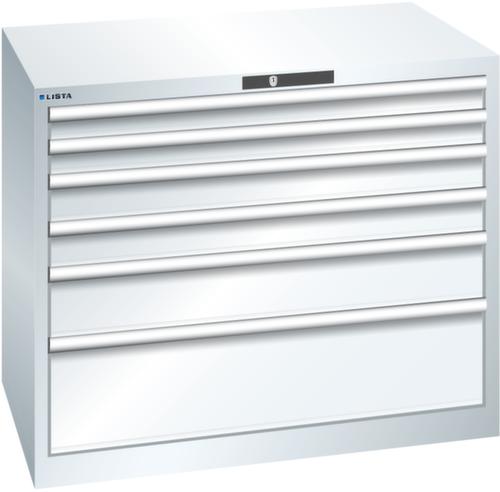 "longDescription": "LISTA Schubladenschrank, Lista Einheit: 54x36E, BxTxH: 1023x725x850mm, Schubladen-Nutzfläche BxT: 918x612mm, Anzahl Schubladen: 6, Anzahl Fronthöhen (Tragkraft): 2x75mm (200kg), 2x100mm (200kg), 1x150mm (200kg), 1x250mm (200kg), Schliessart: Key Lock, Standard-Schliessung mit Wechselyzlinder inkl. 2 Schlüsseln mit Schlüsselnummer, Farbe Gehäuse: Reinweiss RAL 9010, Farbe Schubladen: Reinweiss RAL 9010. Höchste Stabilität: Gehäuse bis 4t belastbar, Schubladen mit 75 oder 200 kg Tragkraft. Maximale Ausnutzung dank Vollauszug und optimaler Mantelhöhe der Schubladen. Exzellente Schutzeigenschaften gegen Schmutz, Flüssigkeiten und mechanische Beanspruchung durch geschlossenes Gehäuse mit schlag- und abriebfester Oberfläche. Überzeugende Sicherheit: Aushebesicherung gegen Herausfallen der Schubladen und Einzelschubladensperre als Kippschutz. Korrosionsschutz durch Elektrophorese-Tauchlackierung und umweltfreundlichen Pulverlack. Optimale Ordnung und Organisation dank speziellem LISTA-Einteilungsmaterial für jeden Zweck und gelochter, geschlitzter Schubladen. Professionelle Beschriftung mit Beschriftungssoftware LISTA Script und hochklappbarer Griffleiste zum Einlegen der Etiketten. Perfekte Laufruhe durch traversenlos geführten Differenzialauszug. Flexible Anpassungsmöglichkeiten durch vorperforierte Löcher für Tischplatten (Punchout), Rollen, Schubladen, Schliesssysteme für einfaches Um- und Nachrüsten<br>",