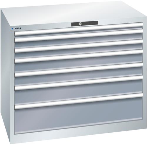 "longDescription": "LISTA Schubladenschrank, Lista Einheit: 54x36E, BxTxH: 1023x725x850mm, Schubladen-Nutzfläche BxT: 918x612mm, Anzahl Schubladen: 7, Anzahl Fronthöhen (Tragkraft): 1x50mm (75kg), 2x75mm (75kg), 2x100mm (75kg), 1x150mm (75kg), 1x200mm (75kg), Schliessart: Key Lock, Standard-Schliessung mit Wechselyzlinder inkl. 2 Schlüsseln mit Schlüsselnummer, Farbe Gehäuse: Lichtgrau RAL 7035, Farbe Schubladen: Grau metallic NCS S 6502-B. Höchste Stabilität: Gehäuse bis 4t belastbar, Schubladen mit 75 oder 200 kg Tragkraft. Maximale Ausnutzung dank Vollauszug und optimaler Mantelhöhe der Schubladen. Exzellente Schutzeigenschaften gegen Schmutz, Flüssigkeiten und mechanische Beanspruchung durch geschlossenes Gehäuse mit schlag- und abriebfester Oberfläche. Überzeugende Sicherheit: Aushebesicherung gegen Herausfallen der Schubladen und Einzelschubladensperre als Kippschutz. Korrosionsschutz durch Elektrophorese-Tauchlackierung und umweltfreundlichen Pulverlack. Optimale Ordnung und Organisation dank speziellem LISTA-Einteilungsmaterial für jeden Zweck und gelochter, geschlitzter Schubladen. Professionelle Beschriftung mit Beschriftungssoftware LISTA Script und hochklappbarer Griffleiste zum Einlegen der Etiketten. Perfekte Laufruhe durch traversenlos geführten Differenzialauszug. Flexible Anpassungsmöglichkeiten durch vorperforierte Löcher für Tischplatten (Punchout), Rollen, Schubladen, Schliesssysteme für einfaches Um- und Nachrüsten<br>",