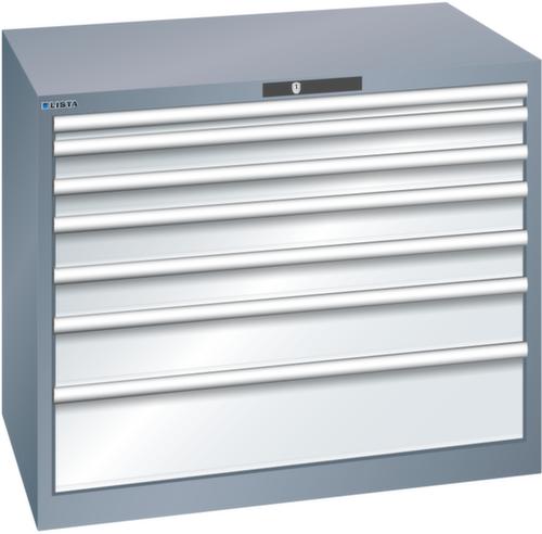 "longDescription": "LISTA Schubladenschrank, Lista Einheit: 54x36E, BxTxH: 1023x725x850mm, Schubladen-Nutzfläche BxT: 918x612mm, Anzahl Schubladen: 7, Anzahl Fronthöhen (Tragkraft): 1x50mm (75kg), 2x75mm (75kg), 2x100mm (75kg), 1x150mm (75kg), 1x200mm (75kg), Schliessart: Code Lock, elektronisches Zahlenschloss mit 10 Ziffern für 4- bis 6-stellige Codes, bis 100 Codes, Farbe Gehäuse: Grau metallic NCS S 6502-B, Farbe Schubladen: Lichtgrau RAL 7035. Höchste Stabilität: Gehäuse bis 4t belastbar, Schubladen mit 75 oder 200 kg Tragkraft. Maximale Ausnutzung dank Vollauszug und optimaler Mantelhöhe der Schubladen. Exzellente Schutzeigenschaften gegen Schmutz, Flüssigkeiten und mechanische Beanspruchung durch geschlossenes Gehäuse mit schlag- und abriebfester Oberfläche. Überzeugende Sicherheit: Aushebesicherung gegen Herausfallen der Schubladen und Einzelschubladensperre als Kippschutz. Korrosionsschutz durch Elektrophorese-Tauchlackierung und umweltfreundlichen Pulverlack. Optimale Ordnung und Organisation dank speziellem LISTA-Einteilungsmaterial für jeden Zweck und gelochter, geschlitzter Schubladen. Professionelle Beschriftung mit Beschriftungssoftware LISTA Script und hochklappbarer Griffleiste zum Einlegen der Etiketten. Perfekte Laufruhe durch traversenlos geführten Differenzialauszug. Flexible Anpassungsmöglichkeiten durch vorperforierte Löcher für Tischplatten (Punchout), Rollen, Schubladen, Schliesssysteme für einfaches Um- und Nachrüsten<br>",