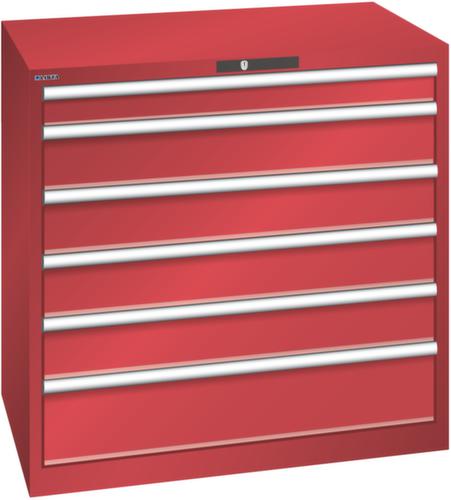 "longDescription": "LISTA Schubladenschrank, Lista Einheit: 54x36E, BxTxH: 1023x725x1000mm, Schubladen-Nutzfläche BxT: 918x612mm, Anzahl Schubladen: 6, Anzahl Fronthöhen (Tragkraft): 1x100mm (200kg), 4x150mm (200kg), 1x200mm (200kg), Schliessart: Key Lock, Standard-Schliessung mit Wechselyzlinder inkl. 2 Schlüsseln mit Schlüsselnummer, Farbe Gehäuse: Rubinrot RAL 3003, Farbe Schubladen: Rubinrot RAL 3003. Höchste Stabilität: Gehäuse bis 4t belastbar, Schubladen mit 75 oder 200 kg Tragkraft. Maximale Ausnutzung dank Vollauszug und optimaler Mantelhöhe der Schubladen. Exzellente Schutzeigenschaften gegen Schmutz, Flüssigkeiten und mechanische Beanspruchung durch geschlossenes Gehäuse mit schlag- und abriebfester Oberfläche. Überzeugende Sicherheit: Aushebesicherung gegen Herausfallen der Schubladen und Einzelschubladensperre als Kippschutz. Korrosionsschutz durch Elektrophorese-Tauchlackierung und umweltfreundlichen Pulverlack. Optimale Ordnung und Organisation dank speziellem LISTA-Einteilungsmaterial für jeden Zweck und gelochter, geschlitzter Schubladen. Professionelle Beschriftung mit Beschriftungssoftware LISTA Script und hochklappbarer Griffleiste zum Einlegen der Etiketten. Perfekte Laufruhe durch traversenlos geführten Differenzialauszug. Flexible Anpassungsmöglichkeiten durch vorperforierte Löcher für Tischplatten (Punchout), Rollen, Schubladen, Schliesssysteme für einfaches Um- und Nachrüsten<br>",