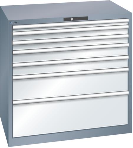 "longDescription": "LISTA Schubladenschrank, Lista Einheit: 54x36E, BxTxH: 1023x725x1000mm, Schubladen-Nutzfläche BxT: 918x612mm, Anzahl Schubladen: 7, Anzahl Fronthöhen (Tragkraft): 1x 50mm (75kg), 2x 75mm (200kg), 2x100mm (200kg), 1x200mm (200kg), 1x300mm (200kg), Schliessart: Key Lock, Standard-Schliessung mit Wechselyzlinder inkl. 2 Schlüsseln mit Schlüsselnummer, Farbe Gehäuse: Grau metallic NCS S 6502-B, Farbe Schubladen: Lichtgrau RAL 7035. Höchste Stabilität: Gehäuse bis 4t belastbar, Schubladen mit 75 oder 200 kg Tragkraft. Maximale Ausnutzung dank Vollauszug und optimaler Mantelhöhe der Schubladen. Exzellente Schutzeigenschaften gegen Schmutz, Flüssigkeiten und mechanische Beanspruchung durch geschlossenes Gehäuse mit schlag- und abriebfester Oberfläche. Überzeugende Sicherheit: Aushebesicherung gegen Herausfallen der Schubladen und Einzelschubladensperre als Kippschutz. Korrosionsschutz durch Elektrophorese-Tauchlackierung und umweltfreundlichen Pulverlack. Optimale Ordnung und Organisation dank speziellem LISTA-Einteilungsmaterial für jeden Zweck und gelochter, geschlitzter Schubladen. Professionelle Beschriftung mit Beschriftungssoftware LISTA Script und hochklappbarer Griffleiste zum Einlegen der Etiketten. Perfekte Laufruhe durch traversenlos geführten Differenzialauszug. Flexible Anpassungsmöglichkeiten durch vorperforierte Löcher für Tischplatten (Punchout), Rollen, Schubladen, Schliesssysteme für einfaches Um- und Nachrüsten<br>",