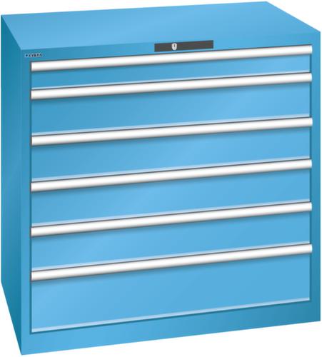 "longDescription": "LISTA Schubladenschrank, Lista Einheit: 54x36E, BxTxH: 1023x725x1000mm, Schubladen-Nutzfläche BxT: 918x612mm, Anzahl Schubladen: 6, Anzahl Fronthöhen (Tragkraft): 1x100mm (75kg), 4x150mm (75kg), 1x200mm (75kg), Schliessart: Key Lock, Standard-Schliessung mit Wechselyzlinder inkl. 2 Schlüsseln mit Schlüsselnummer, Farbe Gehäuse: Lichtblau RAL 5012, Farbe Schubladen: Lichtblau RAL 5012. Höchste Stabilität: Gehäuse bis 4t belastbar, Schubladen mit 75 oder 200 kg Tragkraft. Maximale Ausnutzung dank Vollauszug und optimaler Mantelhöhe der Schubladen. Exzellente Schutzeigenschaften gegen Schmutz, Flüssigkeiten und mechanische Beanspruchung durch geschlossenes Gehäuse mit schlag- und abriebfester Oberfläche. Überzeugende Sicherheit: Aushebesicherung gegen Herausfallen der Schubladen und Einzelschubladensperre als Kippschutz. Korrosionsschutz durch Elektrophorese-Tauchlackierung und umweltfreundlichen Pulverlack. Optimale Ordnung und Organisation dank speziellem LISTA-Einteilungsmaterial für jeden Zweck und gelochter, geschlitzter Schubladen. Professionelle Beschriftung mit Beschriftungssoftware LISTA Script und hochklappbarer Griffleiste zum Einlegen der Etiketten. Perfekte Laufruhe durch traversenlos geführten Differenzialauszug. Flexible Anpassungsmöglichkeiten durch vorperforierte Löcher für Tischplatten (Punchout), Rollen, Schubladen, Schliesssysteme für einfaches Um- und Nachrüsten<br>",