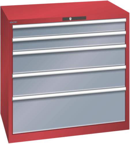 "longDescription": "LISTA Schubladenschrank, Lista Einheit: 54x36E, BxTxH: 1023x725x1000mm, Schubladen-Nutzfläche BxT: 918x612mm, Anzahl Schubladen: 5, Anzahl Fronthöhen (Tragkraft): 2x100mm (75kg), 2x200mm (75kg), 1x300mm (200kg), Schliessart: Key Lock, Standard-Schliessung mit Wechselyzlinder inkl. 2 Schlüsseln mit Schlüsselnummer, Farbe Gehäuse: Rubinrot RAL 3003, Farbe Schubladen: Grau metallic NCS S 6502-B. Höchste Stabilität: Gehäuse bis 4t belastbar, Schubladen mit 75 oder 200 kg Tragkraft. Maximale Ausnutzung dank Vollauszug und optimaler Mantelhöhe der Schubladen. Exzellente Schutzeigenschaften gegen Schmutz, Flüssigkeiten und mechanische Beanspruchung durch geschlossenes Gehäuse mit schlag- und abriebfester Oberfläche. Überzeugende Sicherheit: Aushebesicherung gegen Herausfallen der Schubladen und Einzelschubladensperre als Kippschutz. Korrosionsschutz durch Elektrophorese-Tauchlackierung und umweltfreundlichen Pulverlack. Optimale Ordnung und Organisation dank speziellem LISTA-Einteilungsmaterial für jeden Zweck und gelochter, geschlitzter Schubladen. Professionelle Beschriftung mit Beschriftungssoftware LISTA Script und hochklappbarer Griffleiste zum Einlegen der Etiketten. Perfekte Laufruhe durch traversenlos geführten Differenzialauszug. Flexible Anpassungsmöglichkeiten durch vorperforierte Löcher für Tischplatten (Punchout), Rollen, Schubladen, Schliesssysteme für einfaches Um- und Nachrüsten<br>",