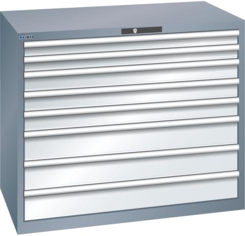 "longDescription": "LISTA Schubladenschrank, Lista Einheit: 64x36E, BxTxH: 1193x725x1000mm, Schubladen-Nutzfläche BxT: 1088x612mm, Anzahl Schubladen: 8, Anzahl Fronthöhen (Tragkraft): 2x75mm (200kg), 3x100mm (200kg), 3x150mm (200kg), Schliessart: Key Lock, Standard-Schliessung mit Wechselyzlinder inkl. 2 Schlüsseln mit Schlüsselnummer, Farbe Gehäuse: Grau metallic NCS S 6502-B, Farbe Schubladen: Lichtgrau RAL 7035. Höchste Stabilität: Gehäuse bis 4t belastbar, Schubladen mit 75 oder 200 kg Tragkraft. Maximale Ausnutzung dank Vollauszug und optimaler Mantelhöhe der Schubladen. Exzellente Schutzeigenschaften gegen Schmutz, Flüssigkeiten und mechanische Beanspruchung durch geschlossenes Gehäuse mit schlag- und abriebfester Oberfläche. Überzeugende Sicherheit: Aushebesicherung gegen Herausfallen der Schubladen und Einzelschubladensperre als Kippschutz. Korrosionsschutz durch Elektrophorese-Tauchlackierung und umweltfreundlichen Pulverlack. Optimale Ordnung und Organisation dank speziellem LISTA-Einteilungsmaterial für jeden Zweck und gelochter, geschlitzter Schubladen. Professionelle Beschriftung mit Beschriftungssoftware LISTA Script und hochklappbarer Griffleiste zum Einlegen der Etiketten. Perfekte Laufruhe durch traversenlos geführten Differenzialauszug. Flexible Anpassungsmöglichkeiten durch vorperforierte Löcher für Tischplatten (Punchout), Rollen, Schubladen, Schliesssysteme für einfaches Um- und Nachrüsten<br>",