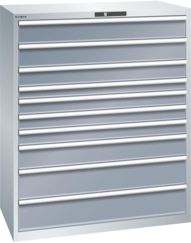 "longDescription": "LISTA Schubladenschrank, Lista Einheit: 64x36E, BxTxH: 1193x725x1450mm, Schubladen-Nutzfläche BxT: 1088x612mm, Anzahl Schubladen: 10, Anzahl Fronthöhen (Tragkraft): 2x150mm (200kg), 1x125mm (200kg), 1x75mm (200kg), 3x100mm (200kg), 1x150mm (200kg), 2x200mm (200kg), Schliessart: Key Lock, Standard-Schliessung mit Wechselyzlinder inkl. 2 Schlüsseln mit Schlüsselnummer, Farbe Gehäuse: Lichtgrau RAL 7035, Farbe Schubladen: Grau metallic NCS S 6502-B. Höchste Stabilität: Gehäuse bis 4t belastbar, Schubladen mit 75 oder 200 kg Tragkraft. Maximale Ausnutzung dank Vollauszug und optimaler Mantelhöhe der Schubladen. Exzellente Schutzeigenschaften gegen Schmutz, Flüssigkeiten und mechanische Beanspruchung durch geschlossenes Gehäuse mit schlag- und abriebfester Oberfläche. Überzeugende Sicherheit: Aushebesicherung gegen Herausfallen der Schubladen und Einzelschubladensperre als Kippschutz. Korrosionsschutz durch Elektrophorese-Tauchlackierung und umweltfreundlichen Pulverlack. Optimale Ordnung und Organisation dank speziellem LISTA-Einteilungsmaterial für jeden Zweck und gelochter, geschlitzter Schubladen. Professionelle Beschriftung mit Beschriftungssoftware LISTA Script und hochklappbarer Griffleiste zum Einlegen der Etiketten. Perfekte Laufruhe durch traversenlos geführten Differenzialauszug. Flexible Anpassungsmöglichkeiten durch vorperforierte Löcher für Tischplatten (Punchout), Rollen, Schubladen, Schliesssysteme für einfaches Um- und Nachrüsten<br>",