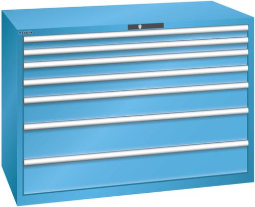 "longDescription": "LISTA Schubladenschrank, Lista Einheit: 78x36E, BxTxH: 1431x725x1000mm, Schubladen-Nutzfläche BxT: 1326x612mm, Anzahl Schubladen: 7, Anzahl Fronthöhen (Tragkraft): 2x75mm (75kg), 2x100mm (75kg), 1x150mm (200kg), 2x200mm (200kg), Schliessart: Key Lock, Standard-Schliessung mit Wechselyzlinder inkl. 2 Schlüsseln mit Schlüsselnummer, Farbe Gehäuse: Lichtblau RAL 5012, Farbe Schubladen: Lichtblau RAL 5012. Höchste Stabilität: Gehäuse bis 4t belastbar, Schubladen mit 75 oder 200 kg Tragkraft. Maximale Ausnutzung dank Vollauszug und optimaler Mantelhöhe der Schubladen. Exzellente Schutzeigenschaften gegen Schmutz, Flüssigkeiten und mechanische Beanspruchung durch geschlossenes Gehäuse mit schlag- und abriebfester Oberfläche. Überzeugende Sicherheit: Aushebesicherung gegen Herausfallen der Schubladen und Einzelschubladensperre als Kippschutz. Korrosionsschutz durch Elektrophorese-Tauchlackierung und umweltfreundlichen Pulverlack. Optimale Ordnung und Organisation dank speziellem LISTA-Einteilungsmaterial für jeden Zweck und gelochter, geschlitzter Schubladen. Professionelle Beschriftung mit Beschriftungssoftware LISTA Script und hochklappbarer Griffleiste zum Einlegen der Etiketten. Perfekte Laufruhe durch traversenlos geführten Differenzialauszug. Flexible Anpassungsmöglichkeiten durch vorperforierte Löcher für Tischplatten (Punchout), Rollen, Schubladen, Schliesssysteme für einfaches Um- und Nachrüsten<br>",