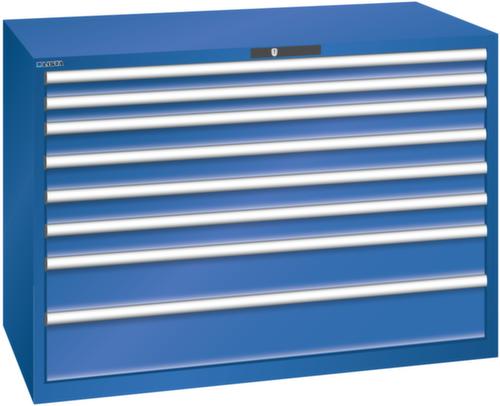 "longDescription": "LISTA Schubladenschrank, Lista Einheit: 78x36E, BxTxH: 1431x725x1000mm, Schubladen-Nutzfläche BxT: 1326x612mm, Anzahl Schubladen: 8, Anzahl Fronthöhen (Tragkraft): 2x75mm (200kg), 4x100mm (200kg), 1x150mm (200kg), 1x200mm (200kg), Schliessart: Code Lock, elektronisches Zahlenschloss mit 10 Ziffern für 4- bis 6-stellige Codes, bis 100 Codes, Farbe Gehäuse: Signalblau RAL 5005, Farbe Schubladen: Signalblau RAL 5005. Höchste Stabilität: Gehäuse bis 4t belastbar, Schubladen mit 75 oder 200 kg Tragkraft. Maximale Ausnutzung dank Vollauszug und optimaler Mantelhöhe der Schubladen. Exzellente Schutzeigenschaften gegen Schmutz, Flüssigkeiten und mechanische Beanspruchung durch geschlossenes Gehäuse mit schlag- und abriebfester Oberfläche. Überzeugende Sicherheit: Aushebesicherung gegen Herausfallen der Schubladen und Einzelschubladensperre als Kippschutz. Korrosionsschutz durch Elektrophorese-Tauchlackierung und umweltfreundlichen Pulverlack. Optimale Ordnung und Organisation dank speziellem LISTA-Einteilungsmaterial für jeden Zweck und gelochter, geschlitzter Schubladen. Professionelle Beschriftung mit Beschriftungssoftware LISTA Script und hochklappbarer Griffleiste zum Einlegen der Etiketten. Perfekte Laufruhe durch traversenlos geführten Differenzialauszug. Flexible Anpassungsmöglichkeiten durch vorperforierte Löcher für Tischplatten (Punchout), Rollen, Schubladen, Schliesssysteme für einfaches Um- und Nachrüsten<br>",