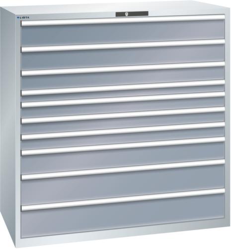 "longDescription": "LISTA Schubladenschrank, Lista Einheit: 78x36E, BxTxH: 1431x725x1450mm, Schubladen-Nutzfläche BxT: 1326x612mm, Anzahl Schubladen: 10, Anzahl Fronthöhen (Tragkraft): 2x150mm (200kg), 1x125mm (200kg), 1x75mm (200kg), 3x100mm (200kg), 1x150mm (200kg), 2x200mm (200kg), Schliessart: Code Lock, elektronisches Zahlenschloss mit 10 Ziffern für 4- bis 6-stellige Codes, bis 100 Codes, Farbe Gehäuse: Lichtgrau RAL 7035, Farbe Schubladen: Grau metallic NCS S 6502-B. Höchste Stabilität: Gehäuse bis 4t belastbar, Schubladen mit 75 oder 200 kg Tragkraft. Maximale Ausnutzung dank Vollauszug und optimaler Mantelhöhe der Schubladen. Exzellente Schutzeigenschaften gegen Schmutz, Flüssigkeiten und mechanische Beanspruchung durch geschlossenes Gehäuse mit schlag- und abriebfester Oberfläche. Überzeugende Sicherheit: Aushebesicherung gegen Herausfallen der Schubladen und Einzelschubladensperre als Kippschutz. Korrosionsschutz durch Elektrophorese-Tauchlackierung und umweltfreundlichen Pulverlack. Optimale Ordnung und Organisation dank speziellem LISTA-Einteilungsmaterial für jeden Zweck und gelochter, geschlitzter Schubladen. Professionelle Beschriftung mit Beschriftungssoftware LISTA Script und hochklappbarer Griffleiste zum Einlegen der Etiketten. Perfekte Laufruhe durch traversenlos geführten Differenzialauszug. Flexible Anpassungsmöglichkeiten durch vorperforierte Löcher für Tischplatten (Punchout), Rollen, Schubladen, Schliesssysteme für einfaches Um- und Nachrüsten<br>",