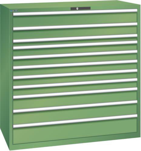 "longDescription": "LISTA Schubladenschrank, Lista Einheit: 78x36E, BxTxH: 1431x725x1450mm, Schubladen-Nutzfläche BxT: 1326x612mm, Anzahl Schubladen: 11, Anzahl Fronthöhen (Tragkraft): 1x150mm (200kg), 1x125mm (200kg), 1x75mm (200kg), 5x100mm (200kg), 2x150mm (200kg), 1x200mm (200kg), Schliessart: Key Lock, Standard-Schliessung mit Wechselyzlinder inkl. 2 Schlüsseln mit Schlüsselnummer, Farbe Gehäuse: Resedagrün RAL 6011, Farbe Schubladen: Resedagrün RAL 6011. Höchste Stabilität: Gehäuse bis 4t belastbar, Schubladen mit 75 oder 200 kg Tragkraft. Maximale Ausnutzung dank Vollauszug und optimaler Mantelhöhe der Schubladen. Exzellente Schutzeigenschaften gegen Schmutz, Flüssigkeiten und mechanische Beanspruchung durch geschlossenes Gehäuse mit schlag- und abriebfester Oberfläche. Überzeugende Sicherheit: Aushebesicherung gegen Herausfallen der Schubladen und Einzelschubladensperre als Kippschutz. Korrosionsschutz durch Elektrophorese-Tauchlackierung und umweltfreundlichen Pulverlack. Optimale Ordnung und Organisation dank speziellem LISTA-Einteilungsmaterial für jeden Zweck und gelochter, geschlitzter Schubladen. Professionelle Beschriftung mit Beschriftungssoftware LISTA Script und hochklappbarer Griffleiste zum Einlegen der Etiketten. Perfekte Laufruhe durch traversenlos geführten Differenzialauszug. Flexible Anpassungsmöglichkeiten durch vorperforierte Löcher für Tischplatten (Punchout), Rollen, Schubladen, Schliesssysteme für einfaches Um- und Nachrüsten<br>",