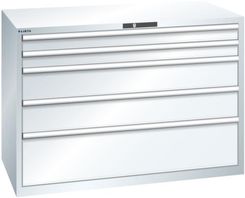 "longDescription": "LISTA Schubladenschrank, Lista Einheit: 78x36E, BxTxH: 1431x725x1000mm, Schubladen-Nutzfläche BxT: 1326x612mm, Anzahl Schubladen: 5, Anzahl Fronthöhen (Tragkraft): 2x100mm (75kg), 2x200mm (200kg), 1x300mm (200kg), Schliessart: Key Lock, Standard-Schliessung mit Wechselyzlinder inkl. 2 Schlüsseln mit Schlüsselnummer, Farbe Gehäuse: Reinweiss RAL 9010, Farbe Schubladen: Reinweiss RAL 9010. Höchste Stabilität: Gehäuse bis 4t belastbar, Schubladen mit 75 oder 200 kg Tragkraft. Maximale Ausnutzung dank Vollauszug und optimaler Mantelhöhe der Schubladen. Exzellente Schutzeigenschaften gegen Schmutz, Flüssigkeiten und mechanische Beanspruchung durch geschlossenes Gehäuse mit schlag- und abriebfester Oberfläche. Überzeugende Sicherheit: Aushebesicherung gegen Herausfallen der Schubladen und Einzelschubladensperre als Kippschutz. Korrosionsschutz durch Elektrophorese-Tauchlackierung und umweltfreundlichen Pulverlack. Optimale Ordnung und Organisation dank speziellem LISTA-Einteilungsmaterial für jeden Zweck und gelochter, geschlitzter Schubladen. Professionelle Beschriftung mit Beschriftungssoftware LISTA Script und hochklappbarer Griffleiste zum Einlegen der Etiketten. Perfekte Laufruhe durch traversenlos geführten Differenzialauszug. Flexible Anpassungsmöglichkeiten durch vorperforierte Löcher für Tischplatten (Punchout), Rollen, Schubladen, Schliesssysteme für einfaches Um- und Nachrüsten<br>",
