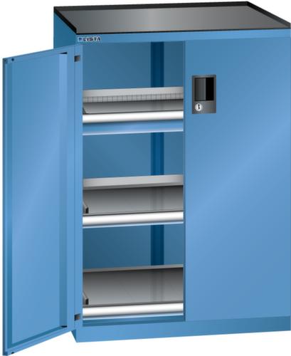 "longDescription": "LISTA Schubladenschrank mit Flügeltüren, Lista Einheit: 36x27E, BxTxH: 717x600x1020mm, Schubladen-Nutzfläche BxT: 612x459mm, Anzahl Schubladen: 1x75mm (75kg), Anzahl Auszugböden: 2x75mm (75kg), Schliessart: Key Lock, Standard-Schliessung mit Wechselzylinder inkl. 2 Schlüsseln mit Schlüsselnummer, Ausstattung: Abrollrand 3-seitig, 20mm hoch, inklusive Rillenmatte, Farbe Gehäuse: Capriblau RAL 5019, Farbe Türen/Schubladen: Capriblau RAL 5019. Allgemeine Vorteile der LISTA Schubladenschränke. Ideal für grosses und schweres Lagergut bis 200 kg pro Schublade mit Auszugböden zur flächenbündigen Lagerung. Jederzeit anpassbar an neues Lagergut durch den flexiblen Ein- und Umbau von Schubladen, Auszugböden und Verstellböden im 25-mm-Raster. Einfaches Versetzen mittels Hubwagen dank Staplersockel auch bei beladenem Schrank<br>",