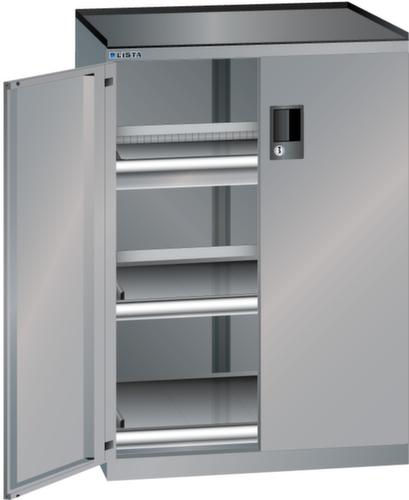 "longDescription": "LISTA Schubladenschrank mit Flügeltüren, Lista Einheit: 36x27E, BxTxH: 717x600x1020mm, Schubladen-Nutzfläche BxT: 612x459mm, Anzahl Schubladen: 1x75mm (75kg), Anzahl Auszugböden: 2x75mm (75kg), Schliessart: Code Lock, elektronisches Zahlenschloss mit 10 Ziffern für 4- bis 6-stellige Codes, bis 100 Codes, Ausstattung: Abrollrand 3-seitig, 20mm hoch, inklusive Rillenmatte, Farbe Gehäuse: Taubengrau NCS S 4502-B, Farbe Türen/Schubladen: Taubengrau NCS S 4502-B. Allgemeine Vorteile der LISTA Schubladenschränke. Ideal für grosses und schweres Lagergut bis 200 kg pro Schublade mit Auszugböden zur flächenbündigen Lagerung. Jederzeit anpassbar an neues Lagergut durch den flexiblen Ein- und Umbau von Schubladen, Auszugböden und Verstellböden im 25-mm-Raster. Einfaches Versetzen mittels Hubwagen dank Staplersockel auch bei beladenem Schrank<br>",