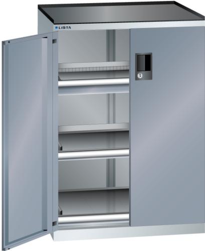 "longDescription": "LISTA Schubladenschrank mit Flügeltüren, Lista Einheit: 36x27E, BxTxH: 717x600x1020mm, Schubladen-Nutzfläche BxT: 612x459mm, Anzahl Schubladen: 1x75mm (75kg), Anzahl Auszugböden: 2x75mm (75kg), Schliessart: Code Lock, elektronisches Zahlenschloss mit 10 Ziffern für 4- bis 6-stellige Codes, bis 100 Codes, Ausstattung: Abrollrand 3-seitig, 20mm hoch, inklusive Rillenmatte, Farbe Gehäuse: Lichtgrau RAL 7035, Farbe Türen/Schubladen: Grau metallic NCS S 6502-B. Allgemeine Vorteile der LISTA Schubladenschränke. Ideal für grosses und schweres Lagergut bis 200 kg pro Schublade mit Auszugböden zur flächenbündigen Lagerung. Jederzeit anpassbar an neues Lagergut durch den flexiblen Ein- und Umbau von Schubladen, Auszugböden und Verstellböden im 25-mm-Raster. Einfaches Versetzen mittels Hubwagen dank Staplersockel auch bei beladenem Schrank<br>",