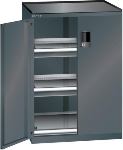 "longDescription": "LISTA Schubladenschrank mit Flügeltüren, Lista Einheit: 36x27E, BxTxH: 717x600x1020mm, Schubladen-Nutzfläche BxT: 612x459mm, Anzahl Schubladen: 2x75mm (75kg), Anzahl Auszugböden: 1x75mm (75kg), Schliessart: Key Lock, Standard-Schliessung mit Wechselzylinder inkl. 2 Schlüsseln mit Schlüsselnummer, Ausstattung: Abrollrand 3-seitig, 20mm hoch, inklusive Rillenmatte, Farbe Gehäuse: Schwarz NCS S 9000-N, Farbe Türen/Schubladen: Schwarz NCS S 9000-N. Allgemeine Vorteile der LISTA Schubladenschränke. Ideal für grosses und schweres Lagergut bis 200 kg pro Schublade mit Auszugböden zur flächenbündigen Lagerung. Jederzeit anpassbar an neues Lagergut durch den flexiblen Ein- und Umbau von Schubladen, Auszugböden und Verstellböden im 25-mm-Raster. Einfaches Versetzen mittels Hubwagen dank Staplersockel auch bei beladenem Schrank<br>",