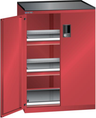 "longDescription": "LISTA Schubladenschrank mit Flügeltüren, Lista Einheit: 36x27E, BxTxH: 717x600x1020mm, Schubladen-Nutzfläche BxT: 612x459mm, Anzahl Schubladen: 2x75mm (75kg), Anzahl Auszugböden: 1x75mm (75kg), Schliessart: Key Lock, Standard-Schliessung mit Wechselzylinder inkl. 2 Schlüsseln mit Schlüsselnummer, Ausstattung: Abrollrand 3-seitig, 20mm hoch, inklusive Rillenmatte, Farbe Gehäuse: Rubinrot RAL 3003, Farbe Türen/Schubladen: Rubinrot RAL 3003. Allgemeine Vorteile der LISTA Schubladenschränke. Ideal für grosses und schweres Lagergut bis 200 kg pro Schublade mit Auszugböden zur flächenbündigen Lagerung. Jederzeit anpassbar an neues Lagergut durch den flexiblen Ein- und Umbau von Schubladen, Auszugböden und Verstellböden im 25-mm-Raster. Einfaches Versetzen mittels Hubwagen dank Staplersockel auch bei beladenem Schrank<br>",