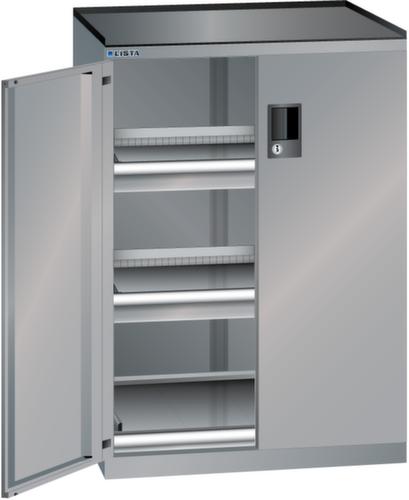 "longDescription": "LISTA Schubladenschrank mit Flügeltüren, Lista Einheit: 36x27E, BxTxH: 717x600x1020mm, Schubladen-Nutzfläche BxT: 612x459mm, Anzahl Schubladen: 2x75mm (200kg), Anzahl Auszugböden: 1x75mm (200kg), Schliessart: Key Lock, Standard-Schliessung mit Wechselzylinder inkl. 2 Schlüsseln mit Schlüsselnummer, Ausstattung: Abrollrand 3-seitig, 20mm hoch, inklusive Rillenmatte, Farbe Gehäuse: Taubengrau NCS S 4502-B, Farbe Türen/Schubladen: Taubengrau NCS S 4502-B. Allgemeine Vorteile der LISTA Schubladenschränke. Ideal für grosses und schweres Lagergut bis 200 kg pro Schublade mit Auszugböden zur flächenbündigen Lagerung. Jederzeit anpassbar an neues Lagergut durch den flexiblen Ein- und Umbau von Schubladen, Auszugböden und Verstellböden im 25-mm-Raster. Einfaches Versetzen mittels Hubwagen dank Staplersockel auch bei beladenem Schrank<br>",