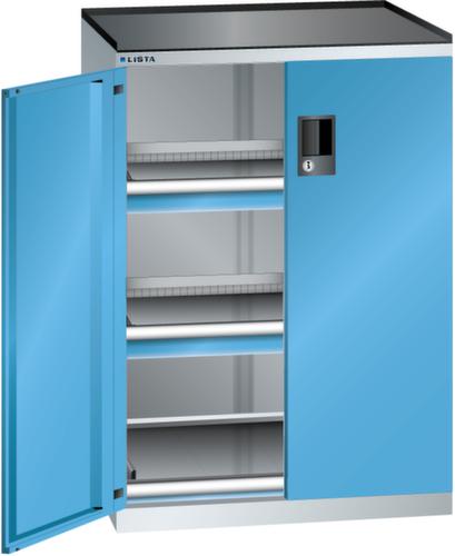 "longDescription": "LISTA Schubladenschrank mit Flügeltüren, Lista Einheit: 36x27E, BxTxH: 717x600x1020mm, Schubladen-Nutzfläche BxT: 612x459mm, Anzahl Schubladen: 2x75mm (200kg), Anzahl Auszugböden: 1x75mm (200kg), Schliessart: Key Lock, Standard-Schliessung mit Wechselzylinder inkl. 2 Schlüsseln mit Schlüsselnummer, Ausstattung: Abrollrand 3-seitig, 20mm hoch, inklusive Rillenmatte, Farbe Gehäuse: Lichtgrau RAL 7035, Farbe Türen/Schubladen: Lichtblau RAL 5012. Allgemeine Vorteile der LISTA Schubladenschränke. Ideal für grosses und schweres Lagergut bis 200 kg pro Schublade mit Auszugböden zur flächenbündigen Lagerung. Jederzeit anpassbar an neues Lagergut durch den flexiblen Ein- und Umbau von Schubladen, Auszugböden und Verstellböden im 25-mm-Raster. Einfaches Versetzen mittels Hubwagen dank Staplersockel auch bei beladenem Schrank<br>",