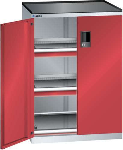 "longDescription": "LISTA Schubladenschrank mit Flügeltüren, Lista Einheit: 36x27E, BxTxH: 717x600x1020mm, Schubladen-Nutzfläche BxT: 612x459mm, Anzahl Schubladen: 2x75mm (200kg), Anzahl Auszugböden: 1x75mm (200kg), Schliessart: Key Lock, Standard-Schliessung mit Wechselzylinder inkl. 2 Schlüsseln mit Schlüsselnummer, Ausstattung: Abrollrand 3-seitig, 20mm hoch, inklusive Rillenmatte, Farbe Gehäuse: Lichtgrau RAL 7035, Farbe Türen/Schubladen: Rubinrot RAL 3003. Allgemeine Vorteile der LISTA Schubladenschränke. Ideal für grosses und schweres Lagergut bis 200 kg pro Schublade mit Auszugböden zur flächenbündigen Lagerung. Jederzeit anpassbar an neues Lagergut durch den flexiblen Ein- und Umbau von Schubladen, Auszugböden und Verstellböden im 25-mm-Raster. Einfaches Versetzen mittels Hubwagen dank Staplersockel auch bei beladenem Schrank<br>",
