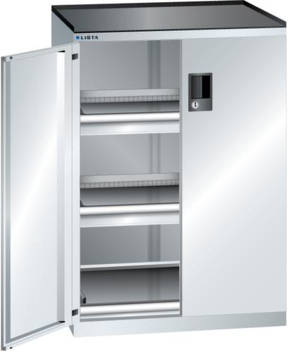 "longDescription": "LISTA Schubladenschrank mit Flügeltüren, Lista Einheit: 36x27E, BxTxH: 717x600x1020mm, Schubladen-Nutzfläche BxT: 612x459mm, Anzahl Schubladen: 2x75mm (200kg), Anzahl Auszugböden: 1x75mm (200kg), Schliessart: Code Lock, elektronisches Zahlenschloss mit 10 Ziffern für 4- bis 6-stellige Codes, bis 100 Codes, Ausstattung: Abrollrand 3-seitig, 20mm hoch, inklusive Rillenmatte, Farbe Gehäuse: Lichtgrau RAL 7035, Farbe Türen/Schubladen: Lichtgrau RAL 7035. Allgemeine Vorteile der LISTA Schubladenschränke. Ideal für grosses und schweres Lagergut bis 200 kg pro Schublade mit Auszugböden zur flächenbündigen Lagerung. Jederzeit anpassbar an neues Lagergut durch den flexiblen Ein- und Umbau von Schubladen, Auszugböden und Verstellböden im 25-mm-Raster. Einfaches Versetzen mittels Hubwagen dank Staplersockel auch bei beladenem Schrank<br>",