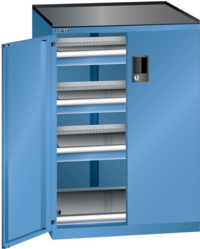 "longDescription": "LISTA Schubladenschrank mit Flügeltüren, Lista Einheit: 36x27E, BxTxH: 717x600x1020mm, Schubladen-Nutzfläche BxT: 612x459mm, Anzahl Schubladen: 3x75mm (75kg), Anzahl Auszugböden: 1x75mm (75kg), Schliessart: Key Lock, Standard-Schliessung mit Wechselzylinder inkl. 2 Schlüsseln mit Schlüsselnummer, Ausstattung: Abrollrand 3-seitig, 20mm hoch, inklusive Rillenmatte, Farbe Gehäuse: Capriblau RAL 5019, Farbe Türen/Schubladen: Capriblau RAL 5019. Allgemeine Vorteile der LISTA Schubladenschränke. Ideal für grosses und schweres Lagergut bis 200 kg pro Schublade mit Auszugböden zur flächenbündigen Lagerung. Jederzeit anpassbar an neues Lagergut durch den flexiblen Ein- und Umbau von Schubladen, Auszugböden und Verstellböden im 25-mm-Raster. Einfaches Versetzen mittels Hubwagen dank Staplersockel auch bei beladenem Schrank<br>",