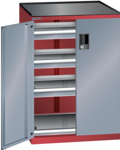 "longDescription": "LISTA Schubladenschrank mit Flügeltüren, Lista Einheit: 36x27E, BxTxH: 717x600x1020mm, Schubladen-Nutzfläche BxT: 612x459mm, Anzahl Schubladen: 3x75mm (75kg), Anzahl Auszugböden: 1x75mm (75kg), Schliessart: Key Lock, Standard-Schliessung mit Wechselzylinder inkl. 2 Schlüsseln mit Schlüsselnummer, Ausstattung: Abrollrand 3-seitig, 20mm hoch, inklusive Rillenmatte, Farbe Gehäuse: Rubinrot RAL 3003, Farbe Türen/Schubladen: Grau metallic NCS S 6502-B. Allgemeine Vorteile der LISTA Schubladenschränke. Ideal für grosses und schweres Lagergut bis 200 kg pro Schublade mit Auszugböden zur flächenbündigen Lagerung. Jederzeit anpassbar an neues Lagergut durch den flexiblen Ein- und Umbau von Schubladen, Auszugböden und Verstellböden im 25-mm-Raster. Einfaches Versetzen mittels Hubwagen dank Staplersockel auch bei beladenem Schrank<br>",