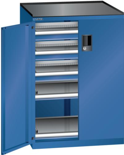 "longDescription": "LISTA Schubladenschrank mit Flügeltüren, Lista Einheit: 36x27E, BxTxH: 717x600x1020mm, Schubladen-Nutzfläche BxT: 612x459mm, Anzahl Schubladen: 3x75mm (75kg), Anzahl Auszugböden: 2x75mm (75kg), Schliessart: Code Lock, elektronisches Zahlenschloss mit 10 Ziffern für 4- bis 6-stellige Codes, bis 100 Codes, Ausstattung: Abrollrand 3-seitig, 20mm hoch, inklusive Rillenmatte, Farbe Gehäuse: Enzianblau RAL 5010, Farbe Türen/Schubladen: Enzianblau RAL 5010. Allgemeine Vorteile der LISTA Schubladenschränke. Ideal für grosses und schweres Lagergut bis 200 kg pro Schublade mit Auszugböden zur flächenbündigen Lagerung. Jederzeit anpassbar an neues Lagergut durch den flexiblen Ein- und Umbau von Schubladen, Auszugböden und Verstellböden im 25-mm-Raster. Einfaches Versetzen mittels Hubwagen dank Staplersockel auch bei beladenem Schrank<br>",