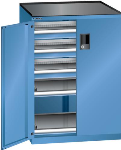 "longDescription": "LISTA Schubladenschrank mit Flügeltüren, Lista Einheit: 36x27E, BxTxH: 717x600x1020mm, Schubladen-Nutzfläche BxT: 612x459mm, Anzahl Schubladen: 3x75mm (200kg), Anzahl Auszugböden: 2x75mm (200kg), Schliessart: Key Lock, Standard-Schliessung mit Wechselzylinder inkl. 2 Schlüsseln mit Schlüsselnummer, Ausstattung: Abrollrand 3-seitig, 20mm hoch, inklusive Rillenmatte, Farbe Gehäuse: Capriblau RAL 5019, Farbe Türen/Schubladen: Capriblau RAL 5019. Allgemeine Vorteile der LISTA Schubladenschränke. Ideal für grosses und schweres Lagergut bis 200 kg pro Schublade mit Auszugböden zur flächenbündigen Lagerung. Jederzeit anpassbar an neues Lagergut durch den flexiblen Ein- und Umbau von Schubladen, Auszugböden und Verstellböden im 25-mm-Raster. Einfaches Versetzen mittels Hubwagen dank Staplersockel auch bei beladenem Schrank<br>",