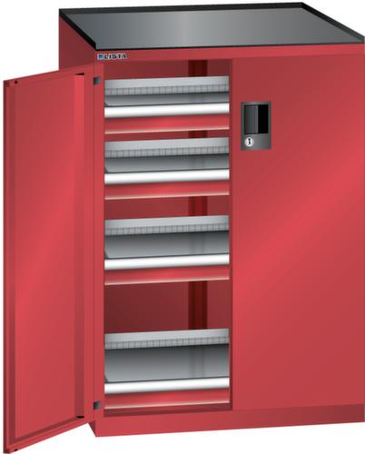 "longDescription": "LISTA Schubladenschrank mit Flügeltüren, Lista Einheit: 36x27E, BxTxH: 717x600x1020mm, Schubladen-Nutzfläche BxT: 612x459mm, Anzahl Schubladen: 4x75mm (75kg), Schliessart: Code Lock, elektronisches Zahlenschloss mit 10 Ziffern für 4- bis 6-stellige Codes, bis 100 Codes, Ausstattung: Abrollrand 3-seitig, 20mm hoch, inklusive Rillenmatte, Farbe Gehäuse: Rubinrot RAL 3003, Farbe Türen/Schubladen: Rubinrot RAL 3003. Allgemeine Vorteile der LISTA Schubladenschränke. Ideal für grosses und schweres Lagergut bis 200 kg pro Schublade mit Auszugböden zur flächenbündigen Lagerung. Jederzeit anpassbar an neues Lagergut durch den flexiblen Ein- und Umbau von Schubladen, Auszugböden und Verstellböden im 25-mm-Raster. Einfaches Versetzen mittels Hubwagen dank Staplersockel auch bei beladenem Schrank<br>",