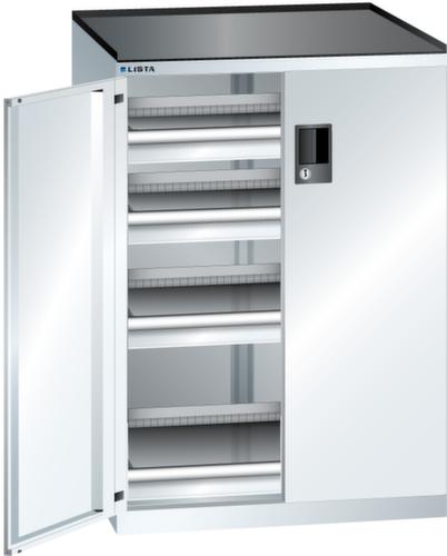 "longDescription": "LISTA Schubladenschrank mit Flügeltüren, Lista Einheit: 36x27E, BxTxH: 717x600x1020mm, Schubladen-Nutzfläche BxT: 612x459mm, Anzahl Schubladen: 4x75mm (200kg), Schliessart: Key Lock, Standard-Schliessung mit Wechselzylinder inkl. 2 Schlüsseln mit Schlüsselnummer, Ausstattung: Abrollrand 3-seitig, 20mm hoch, inklusive Rillenmatte, Farbe Gehäuse: Reinweiss RAL 9010, Farbe Türen/Schubladen: Reinweiss RAL 9010. Allgemeine Vorteile der LISTA Schubladenschränke. Ideal für grosses und schweres Lagergut bis 200 kg pro Schublade mit Auszugböden zur flächenbündigen Lagerung. Jederzeit anpassbar an neues Lagergut durch den flexiblen Ein- und Umbau von Schubladen, Auszugböden und Verstellböden im 25-mm-Raster. Einfaches Versetzen mittels Hubwagen dank Staplersockel auch bei beladenem Schrank<br>",