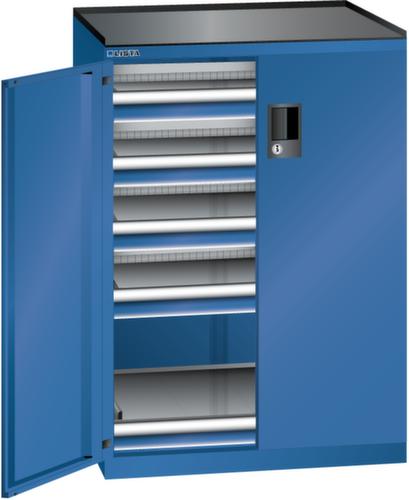 "longDescription": "LISTA Schubladenschrank mit Flügeltüren, Lista Einheit: 36x27E, BxTxH: 717x600x1020mm, Schubladen-Nutzfläche BxT: 612x459mm, Anzahl Schubladen: 5x75mm (200kg), Schliessart: Key Lock, Standard-Schliessung mit Wechselzylinder inkl. 2 Schlüsseln mit Schlüsselnummer, Ausstattung: Abrollrand 3-seitig, 20mm hoch, inklusive Rillenmatte, Farbe Gehäuse: Enzianblau RAL 5010, Farbe Türen/Schubladen: Enzianblau RAL 5010. Allgemeine Vorteile der LISTA Schubladenschränke. Ideal für grosses und schweres Lagergut bis 200 kg pro Schublade mit Auszugböden zur flächenbündigen Lagerung. Jederzeit anpassbar an neues Lagergut durch den flexiblen Ein- und Umbau von Schubladen, Auszugböden und Verstellböden im 25-mm-Raster. Einfaches Versetzen mittels Hubwagen dank Staplersockel auch bei beladenem Schrank<br>",
