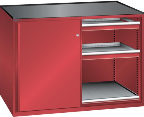"longDescription": "LISTA Schubladenschrank mit Schiebetüren, Lista Einheit: 2 x 36x27E, BxTxH: 1430x627x1020mm, Schubladen-Nutzfläche BxT: 612x459mm, Anzahl Schubladen: 4x75mm (75kg), Anzahl Auszugböden: 2x75mm (75kg), Schliessart: Key Lock, Standard-Schliessung mit Wechselzylinder inkl. 2 Schlüsseln mit Schlüsselnummer, Ausstattung: Abrollrand 3-seitig, 20mm hoch, inklusive Rillenmatte, Farbe Gehäuse: Rubinrot RAL 3003, Farbe Türen/Schubladen: Rubinrot RAL 3003. Allgemeine Vorteile der LISTA Schubladenschränke. Ideal für grosses und schweres Lagergut bis 200 kg pro Schublade mit Auszugböden zur flächenbündigen Lagerung. Jederzeit anpassbar an neues Lagergut durch den flexiblen Ein- und Umbau von Schubladen, Auszugböden und Verstellböden im 25-mm-Raster. Einfaches Versetzen mittels Hubwagen dank Staplersockel auch bei beladenem Schrank<br>",
