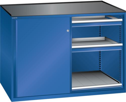 "longDescription": "LISTA Schubladenschrank mit Schiebetüren, Lista Einheit: 2 x 36x27E, BxTxH: 1430x627x1020mm, Schubladen-Nutzfläche BxT: 612x459mm, Anzahl Schubladen: 4x75mm (75kg), Anzahl Auszugböden: 2x75mm (75kg), Schliessart: Key Lock, Standard-Schliessung mit Wechselzylinder inkl. 2 Schlüsseln mit Schlüsselnummer, Ausstattung: Abrollrand 3-seitig, 20mm hoch, inklusive Rillenmatte, Farbe Gehäuse: Signalblau RAL 5005, Farbe Türen/Schubladen: Signalblau RAL 5005. Allgemeine Vorteile der LISTA Schubladenschränke. Ideal für grosses und schweres Lagergut bis 200 kg pro Schublade mit Auszugböden zur flächenbündigen Lagerung. Jederzeit anpassbar an neues Lagergut durch den flexiblen Ein- und Umbau von Schubladen, Auszugböden und Verstellböden im 25-mm-Raster. Einfaches Versetzen mittels Hubwagen dank Staplersockel auch bei beladenem Schrank<br>",