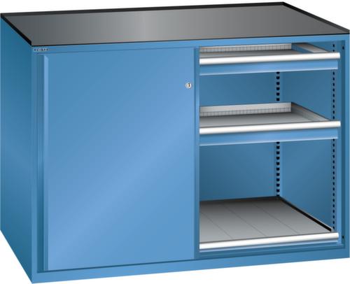 "longDescription": "LISTA Schubladenschrank mit Schiebetüren, Lista Einheit: 2 x 36x27E, BxTxH: 1430x627x1020mm, Schubladen-Nutzfläche BxT: 612x459mm, Anzahl Schubladen: 4x75mm (200kg), Anzahl Auszugböden: 2x75mm (200kg), Schliessart: Key Lock, Standard-Schliessung mit Wechselzylinder inkl. 2 Schlüsseln mit Schlüsselnummer, Ausstattung: Abrollrand 3-seitig, 20mm hoch, inklusive Rillenmatte, Farbe Gehäuse: Capriblau RAL 5019, Farbe Türen/Schubladen: Capriblau RAL 5019. Allgemeine Vorteile der LISTA Schubladenschränke. Ideal für grosses und schweres Lagergut bis 200 kg pro Schublade mit Auszugböden zur flächenbündigen Lagerung. Jederzeit anpassbar an neues Lagergut durch den flexiblen Ein- und Umbau von Schubladen, Auszugböden und Verstellböden im 25-mm-Raster. Einfaches Versetzen mittels Hubwagen dank Staplersockel auch bei beladenem Schrank<br>",