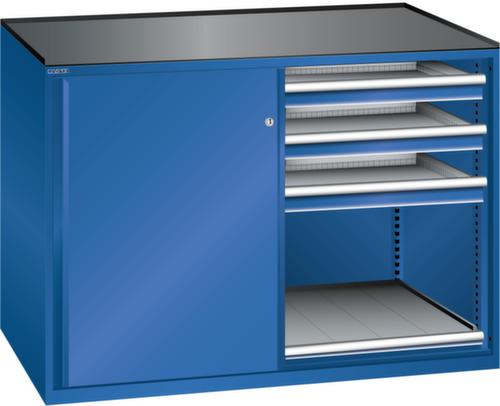 "longDescription": "LISTA Schubladenschrank mit Schiebetüren, Lista Einheit: 2 x 36x27E, BxTxH: 1430x627x1020mm, Schubladen-Nutzfläche BxT: 612x459mm, Anzahl Schubladen: 6x75mm (200kg), Anzahl Auszugböden: 2x75mm (200kg), Schliessart: Key Lock, Standard-Schliessung mit Wechselzylinder inkl. 2 Schlüsseln mit Schlüsselnummer, Ausstattung: Abrollrand 3-seitig, 20mm hoch, inklusive Rillenmatte, Farbe Gehäuse: Signalblau RAL 5005, Farbe Türen/Schubladen: Signalblau RAL 5005. Allgemeine Vorteile der LISTA Schubladenschränke. Ideal für grosses und schweres Lagergut bis 200 kg pro Schublade mit Auszugböden zur flächenbündigen Lagerung. Jederzeit anpassbar an neues Lagergut durch den flexiblen Ein- und Umbau von Schubladen, Auszugböden und Verstellböden im 25-mm-Raster. Einfaches Versetzen mittels Hubwagen dank Staplersockel auch bei beladenem Schrank<br>",