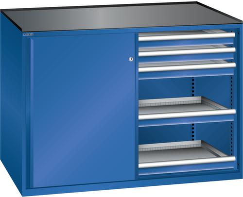 "longDescription": "LISTA Schubladenschrank mit Schiebetüren, Lista Einheit: 2 x 36x27E, BxTxH: 1430x627x1020mm, Schubladen-Nutzfläche BxT: 612x459mm, Anzahl Schubladen: 10x75mm (75kg), Schliessart: Key Lock, Standard-Schliessung mit Wechselzylinder inkl. 2 Schlüsseln mit Schlüsselnummer, Ausstattung: Abrollrand 3-seitig, 20mm hoch, inklusive Rillenmatte, Farbe Gehäuse: Signalblau RAL 5005, Farbe Türen/Schubladen: Signalblau RAL 5005. Allgemeine Vorteile der LISTA Schubladenschränke. Ideal für grosses und schweres Lagergut bis 200 kg pro Schublade mit Auszugböden zur flächenbündigen Lagerung. Jederzeit anpassbar an neues Lagergut durch den flexiblen Ein- und Umbau von Schubladen, Auszugböden und Verstellböden im 25-mm-Raster. Einfaches Versetzen mittels Hubwagen dank Staplersockel auch bei beladenem Schrank<br>",