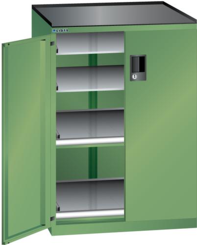 "longDescription": "LISTA Schubladenschrank mit Flügeltüren, Lista Einheit: 36x36E, BxTxH: 717x753x1020mm, Schubladen-Nutzfläche BxT: 612x612mm, Anzahl Auszugböden: 2x75mm (75kg), Anzahl Verstellböden: 2 (200kg), Schliessart: Key Lock, Standard-Schliessung mit Wechselzylinder inkl. 2 Schlüsseln mit Schlüsselnummer, Ausstattung: Abrollrand 3-seitig, 20mm hoch, inklusive Rillenmatte, Farbe Gehäuse: Resedagrün RAL 6011, Farbe Türen/Schubladen: Resedagrün RAL 6011. Allgemeine Vorteile der LISTA Schubladenschränke. Ideal für grosses und schweres Lagergut bis 200 kg pro Schublade mit Auszugböden zur flächenbündigen Lagerung. Jederzeit anpassbar an neues Lagergut durch den flexiblen Ein- und Umbau von Schubladen, Auszugböden und Verstellböden im 25-mm-Raster. Einfaches Versetzen mittels Hubwagen dank Staplersockel auch bei beladenem Schrank<br>",