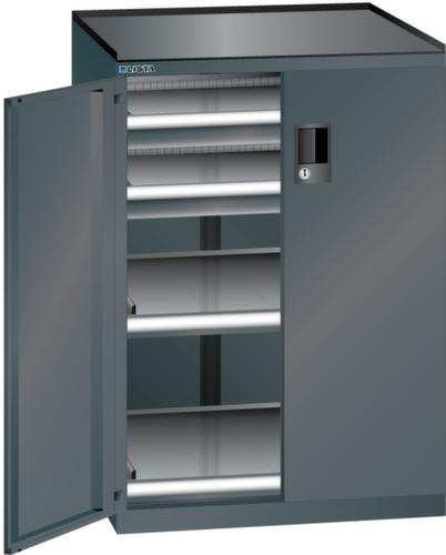 "longDescription": "LISTA Schubladenschrank mit Flügeltüren, Lista Einheit: 36x36E, BxTxH: 717x753x1020mm, Schubladen-Nutzfläche BxT: 612x612mm, Anzahl Schubladen: 2x75mm (75kg), Anzahl Auszugböden: 2x75mm (75kg), Schliessart: Key Lock, Standard-Schliessung mit Wechselzylinder inkl. 2 Schlüsseln mit Schlüsselnummer, Ausstattung: Abrollrand 3-seitig, 20mm hoch, inklusive Rillenmatte, Farbe Gehäuse: Schwarz NCS S 9000-N, Farbe Türen/Schubladen: Schwarz NCS S 9000-N. Allgemeine Vorteile der LISTA Schubladenschränke. Ideal für grosses und schweres Lagergut bis 200 kg pro Schublade mit Auszugböden zur flächenbündigen Lagerung. Jederzeit anpassbar an neues Lagergut durch den flexiblen Ein- und Umbau von Schubladen, Auszugböden und Verstellböden im 25-mm-Raster. Einfaches Versetzen mittels Hubwagen dank Staplersockel auch bei beladenem Schrank<br>",