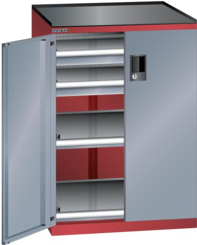 "longDescription": "LISTA Schubladenschrank mit Flügeltüren, Lista Einheit: 36x36E, BxTxH: 717x753x1020mm, Schubladen-Nutzfläche BxT: 612x612mm, Anzahl Schubladen: 2x75mm (75kg), Anzahl Auszugböden: 2x75mm (75kg), Schliessart: Key Lock, Standard-Schliessung mit Wechselzylinder inkl. 2 Schlüsseln mit Schlüsselnummer, Ausstattung: Abrollrand 3-seitig, 20mm hoch, inklusive Rillenmatte, Farbe Gehäuse: Rubinrot RAL 3003, Farbe Türen/Schubladen: Grau metallic NCS S 6502-B. Allgemeine Vorteile der LISTA Schubladenschränke. Ideal für grosses und schweres Lagergut bis 200 kg pro Schublade mit Auszugböden zur flächenbündigen Lagerung. Jederzeit anpassbar an neues Lagergut durch den flexiblen Ein- und Umbau von Schubladen, Auszugböden und Verstellböden im 25-mm-Raster. Einfaches Versetzen mittels Hubwagen dank Staplersockel auch bei beladenem Schrank<br>",