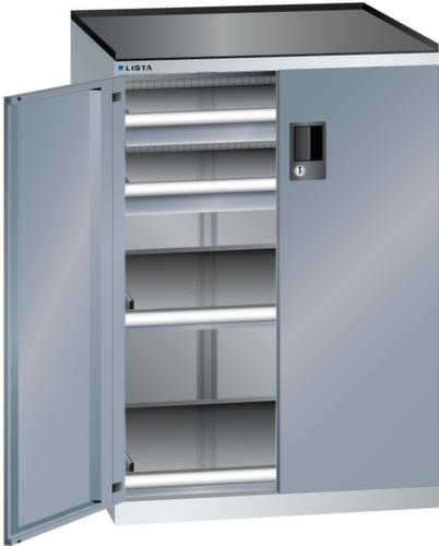 "longDescription": "LISTA Schubladenschrank mit Flügeltüren, Lista Einheit: 36x36E, BxTxH: 717x753x1020mm, Schubladen-Nutzfläche BxT: 612x612mm, Anzahl Schubladen: 2x75mm (75kg), Anzahl Auszugböden: 2x75mm (75kg), Schliessart: Code Lock, elektronisches Zahlenschloss mit 10 Ziffern für 4- bis 6-stellige Codes, bis 100 Codes, Ausstattung: Abrollrand 3-seitig, 20mm hoch, inklusive Rillenmatte, Farbe Gehäuse: Lichtgrau RAL 7035, Farbe Türen/Schubladen: Grau metallic NCS S 6502-B. Allgemeine Vorteile der LISTA Schubladenschränke. Ideal für grosses und schweres Lagergut bis 200 kg pro Schublade mit Auszugböden zur flächenbündigen Lagerung. Jederzeit anpassbar an neues Lagergut durch den flexiblen Ein- und Umbau von Schubladen, Auszugböden und Verstellböden im 25-mm-Raster. Einfaches Versetzen mittels Hubwagen dank Staplersockel auch bei beladenem Schrank<br>",