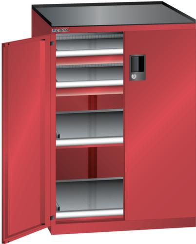 "longDescription": "LISTA Schubladenschrank mit Flügeltüren, Lista Einheit: 36x36E, BxTxH: 717x753x1020mm, Schubladen-Nutzfläche BxT: 612x612mm, Anzahl Schubladen: 2x75mm (200kg), Anzahl Auszugböden: 2x75mm (200kg), Schliessart: Key Lock, Standard-Schliessung mit Wechselzylinder inkl. 2 Schlüsseln mit Schlüsselnummer, Ausstattung: Abrollrand 3-seitig, 20mm hoch, inklusive Rillenmatte, Farbe Gehäuse: Rubinrot RAL 3003, Farbe Türen/Schubladen: Rubinrot RAL 3003. Allgemeine Vorteile der LISTA Schubladenschränke. Ideal für grosses und schweres Lagergut bis 200 kg pro Schublade mit Auszugböden zur flächenbündigen Lagerung. Jederzeit anpassbar an neues Lagergut durch den flexiblen Ein- und Umbau von Schubladen, Auszugböden und Verstellböden im 25-mm-Raster. Einfaches Versetzen mittels Hubwagen dank Staplersockel auch bei beladenem Schrank<br>",