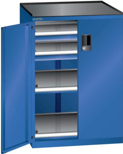 "longDescription": "LISTA Schubladenschrank mit Flügeltüren, Lista Einheit: 36x36E, BxTxH: 717x753x1020mm, Schubladen-Nutzfläche BxT: 612x612mm, Anzahl Schubladen: 2x75mm (200kg), Anzahl Auszugböden: 2x75mm (200kg), Schliessart: Key Lock, Standard-Schliessung mit Wechselzylinder inkl. 2 Schlüsseln mit Schlüsselnummer, Ausstattung: Abrollrand 3-seitig, 20mm hoch, inklusive Rillenmatte, Farbe Gehäuse: Signalblau RAL 5005, Farbe Türen/Schubladen: Signalblau RAL 5005. Allgemeine Vorteile der LISTA Schubladenschränke. Ideal für grosses und schweres Lagergut bis 200 kg pro Schublade mit Auszugböden zur flächenbündigen Lagerung. Jederzeit anpassbar an neues Lagergut durch den flexiblen Ein- und Umbau von Schubladen, Auszugböden und Verstellböden im 25-mm-Raster. Einfaches Versetzen mittels Hubwagen dank Staplersockel auch bei beladenem Schrank<br>",
