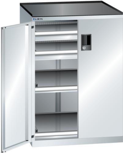"longDescription": "LISTA Schubladenschrank mit Flügeltüren, Lista Einheit: 36x36E, BxTxH: 717x753x1020mm, Schubladen-Nutzfläche BxT: 612x612mm, Anzahl Schubladen: 2x75mm (200kg), Anzahl Auszugböden: 2x75mm (200kg), Schliessart: Code Lock, elektronisches Zahlenschloss mit 10 Ziffern für 4- bis 6-stellige Codes, bis 100 Codes, Ausstattung: Abrollrand 3-seitig, 20mm hoch, inklusive Rillenmatte, Farbe Gehäuse: Lichtgrau RAL 7035, Farbe Türen/Schubladen: Lichtgrau RAL 7035. Allgemeine Vorteile der LISTA Schubladenschränke. Ideal für grosses und schweres Lagergut bis 200 kg pro Schublade mit Auszugböden zur flächenbündigen Lagerung. Jederzeit anpassbar an neues Lagergut durch den flexiblen Ein- und Umbau von Schubladen, Auszugböden und Verstellböden im 25-mm-Raster. Einfaches Versetzen mittels Hubwagen dank Staplersockel auch bei beladenem Schrank<br>",