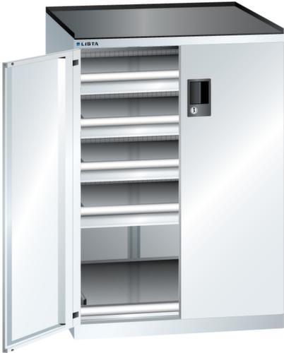"longDescription": "LISTA Schubladenschrank mit Flügeltüren, Lista Einheit: 36x36E, BxTxH: 717x753x1020mm, Schubladen-Nutzfläche BxT: 612x612mm, Anzahl Schubladen: 4x75mm (75kg), Anzahl Auszugböden: 1x75mm (75kg), Schliessart: Key Lock, Standard-Schliessung mit Wechselzylinder inkl. 2 Schlüsseln mit Schlüsselnummer, Ausstattung: Abrollrand 3-seitig, 20mm hoch, inklusive Rillenmatte, Farbe Gehäuse: Reinweiss RAL 9010, Farbe Türen/Schubladen: Reinweiss RAL 9010. Allgemeine Vorteile der LISTA Schubladenschränke. Ideal für grosses und schweres Lagergut bis 200 kg pro Schublade mit Auszugböden zur flächenbündigen Lagerung. Jederzeit anpassbar an neues Lagergut durch den flexiblen Ein- und Umbau von Schubladen, Auszugböden und Verstellböden im 25-mm-Raster. Einfaches Versetzen mittels Hubwagen dank Staplersockel auch bei beladenem Schrank<br>",